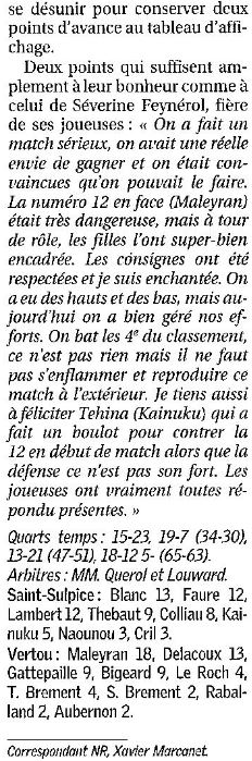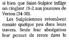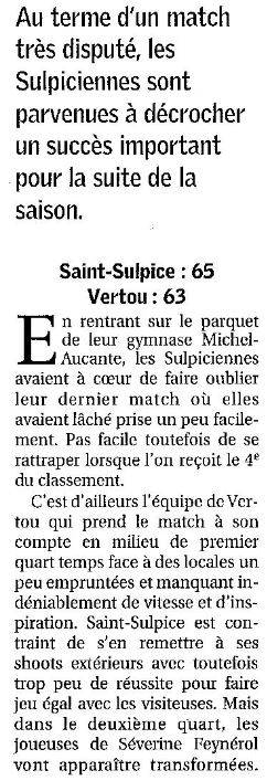 Saison 2007-2008 : En Championnat de Nationale Féminine 3, lors de la Journée du 28 Octobre 2007, Saint-Sulpice bat Vertou