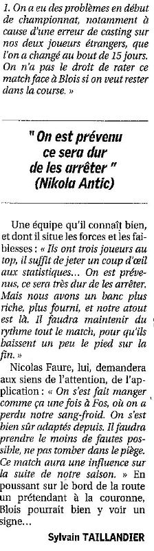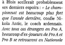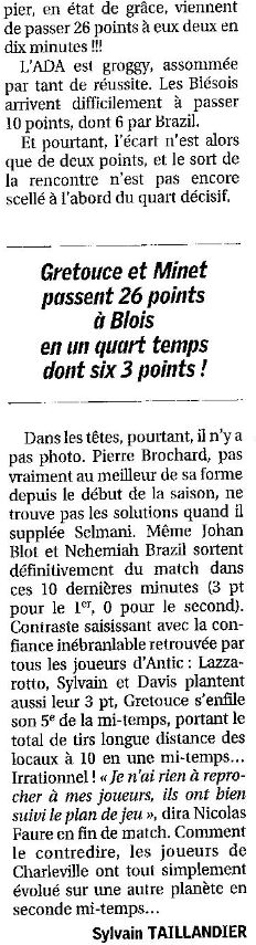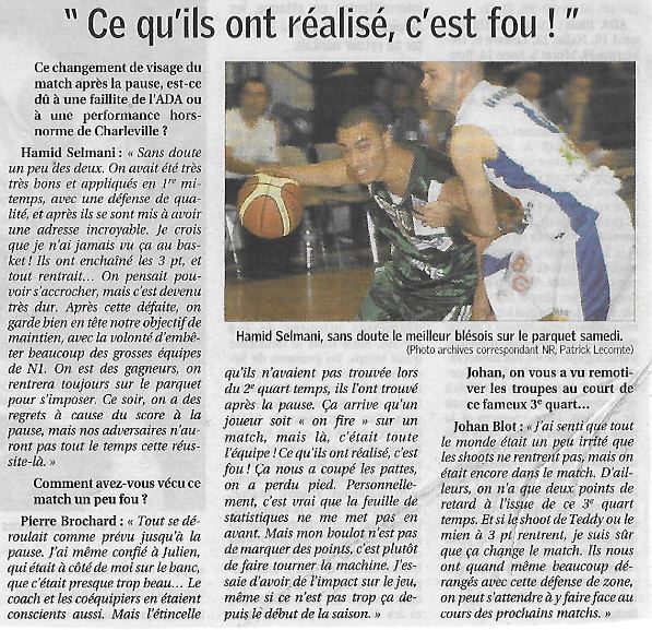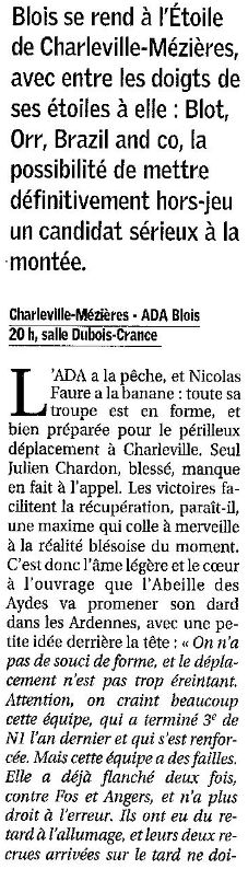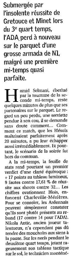 Saison 2007-2008 : En Championnat de Nationale Masculine 1, lors de la Journée du 10 Novembre 2007, Charleville-Mézières bat l’ADA Blois