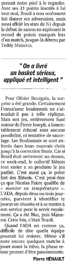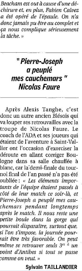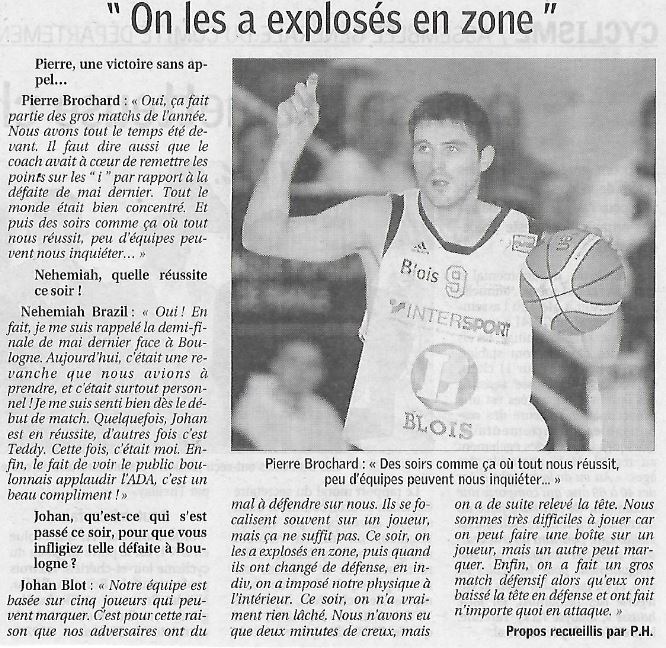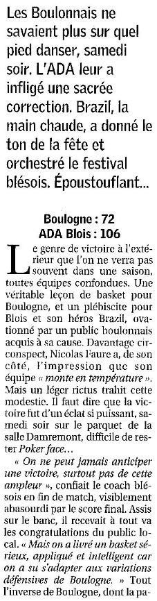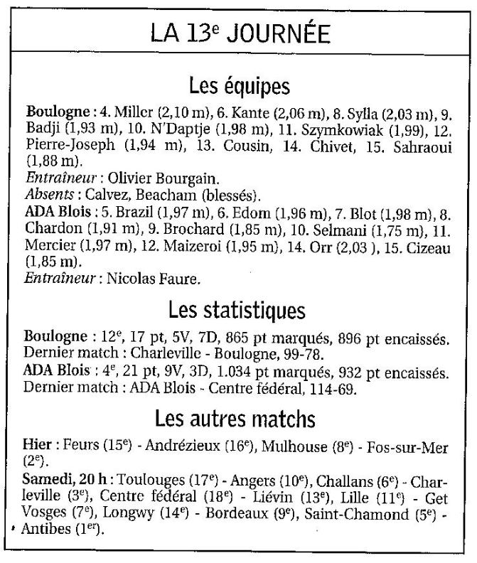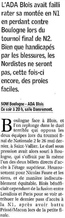 Saison 2007-2008 : En Championnat de Nationale Masculine 1, lors de la Journée du 1er Décembre 2007, l’ADA Blois bat Boulogne-sur-Mer