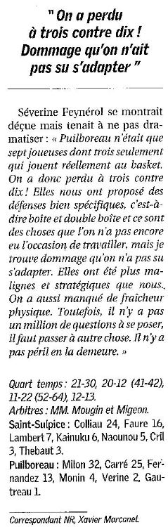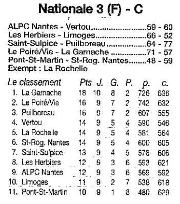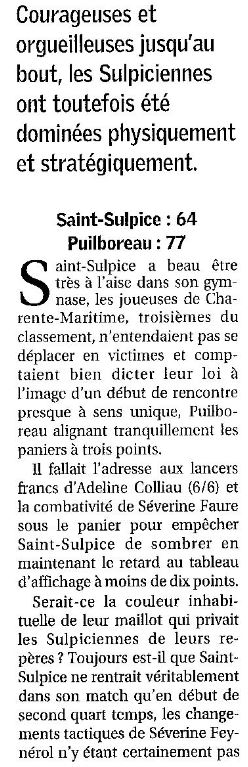 Saison 2007-2008 : En Championnat de Nationale Féminine 3, lors de la Journée du 2 Décembre 2007, Puilboreau bat Saint-Sulpice