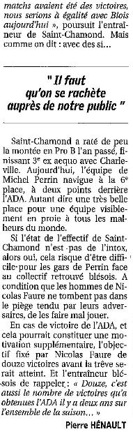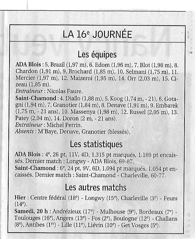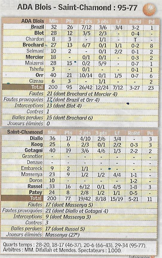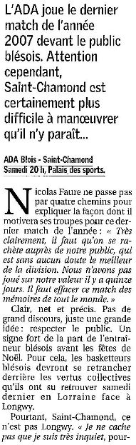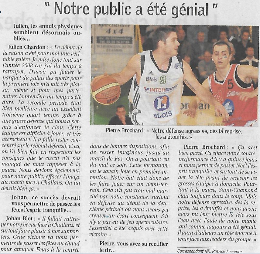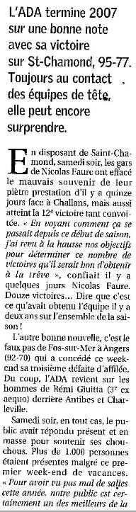 Saison 2007-2008 : En Championnat de Nationale Masculine 1, lors de la Journée du 22 Décembre 2007, l’ADA Blois bat Saint-Chamond
