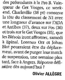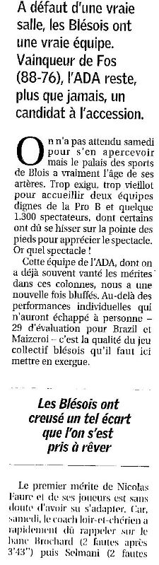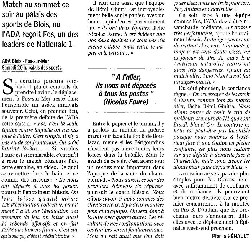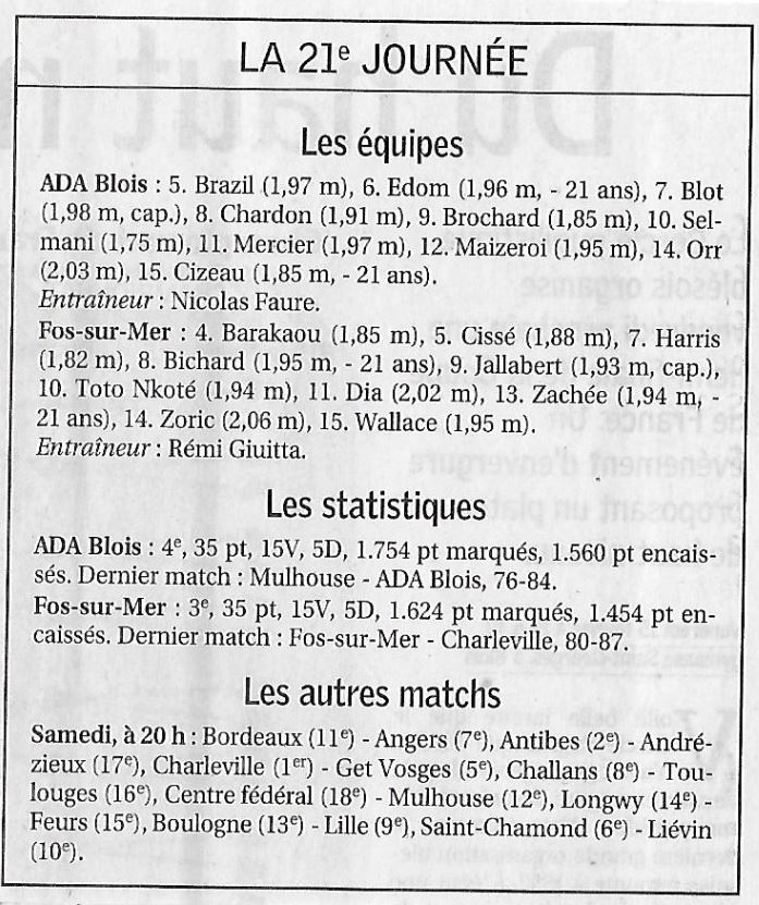 Saison 2007-2008 : En Championnat de Nationale Masculine 1, lors de la Journée du 9 Février 2008, l’ADA Blois bat Fos-sur-Mer
