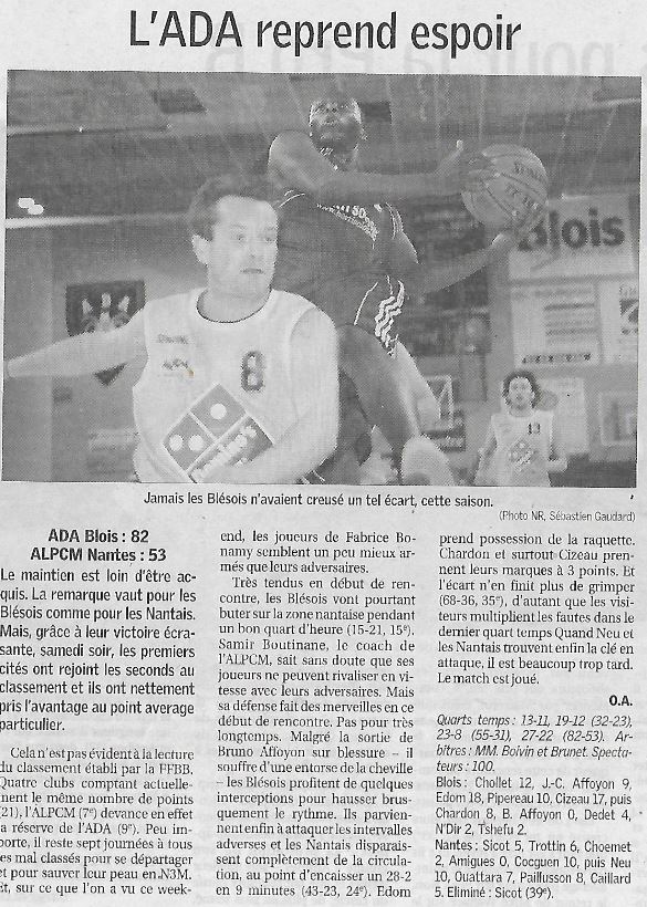 Saison 2007-2008 : En Nationale Masculine 3, lors de la Journée du 9 Février 2008, l’ADA Blois (R) bat ALPCM Nantes