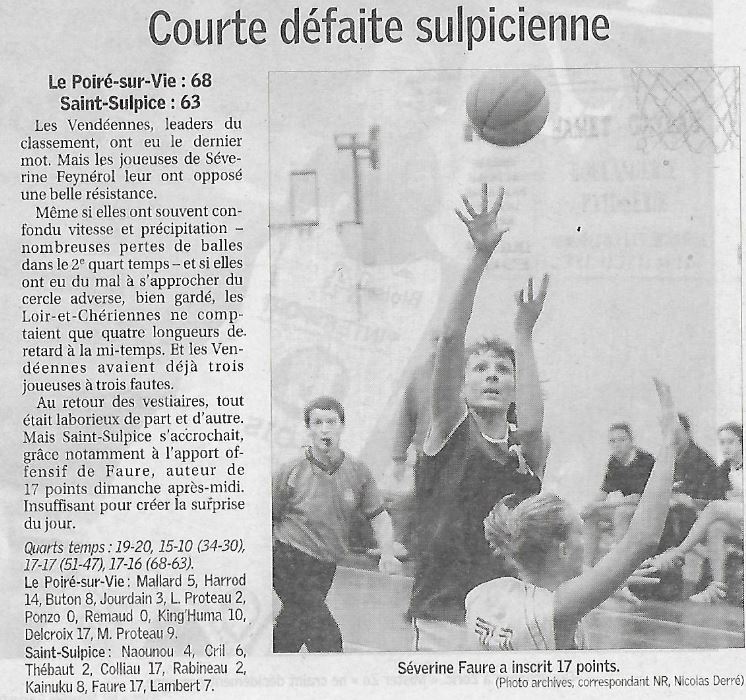 Saison 2007-2008 : En Championnat de Nationale Féminine 3, lors de la Journée du 10 Février 2008, Le Poiré-sur-Vie bat Saint-Sulpice