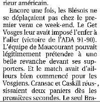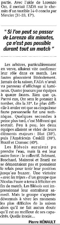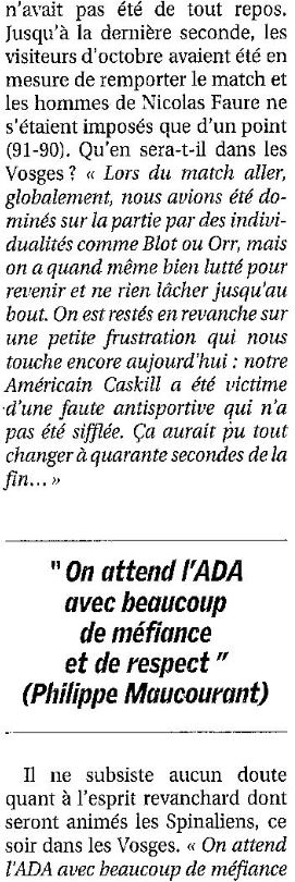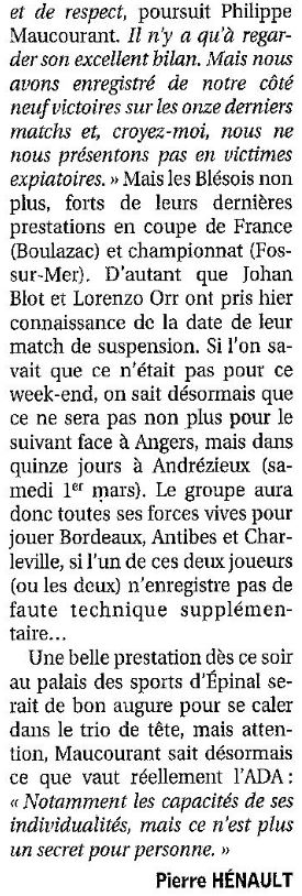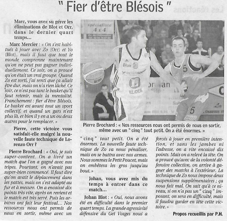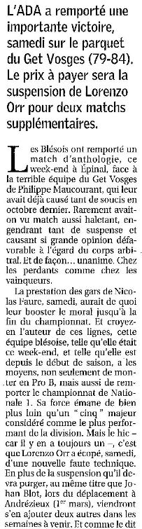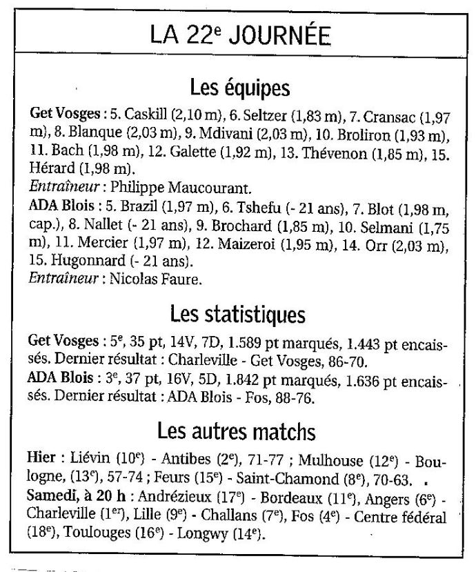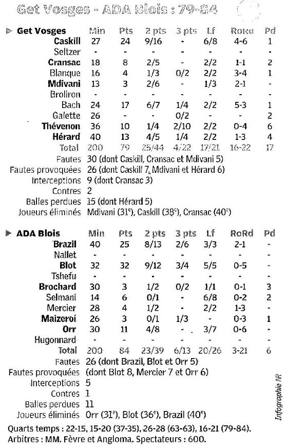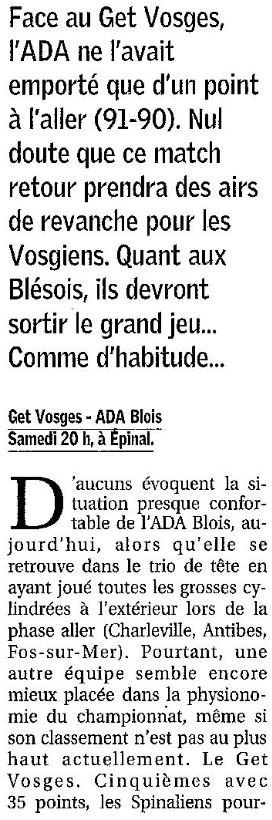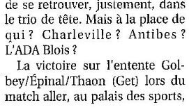 Saison 2007-2008 : En Championnat de Nationale Masculine 1, lors de la Journée du 16 Février 2008, l’ADA Blois bat GET Vosges