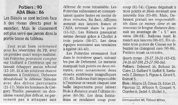 Saison 2007-2008 : En Championnat de Nationale Masculine 3, lors de la Journée du 16 Février 2008, Poitiers bat l’ADA Blois (R)