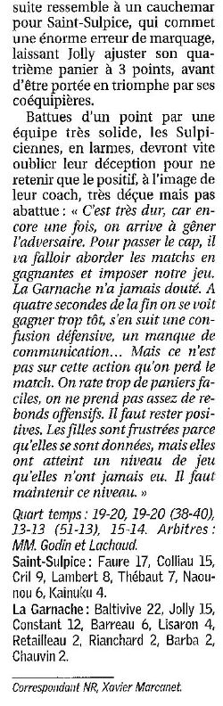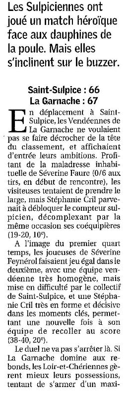 Saison 2007-2008 : En Championnat de Nationale Féminine 3, lors de la Journée du 17 Février 2008, La Garnache bat Saint-Sulpice