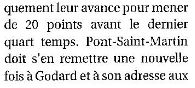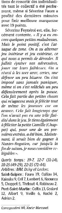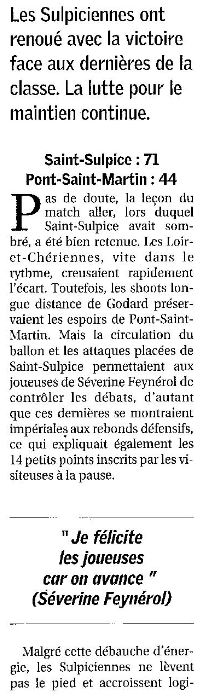 Saison 2007-2008 : En Championnat de Nationale Féminine 3, lors de la Journée du 9 Mars 2008, Saint-Sulpice bat Pont-Saint-Martin
