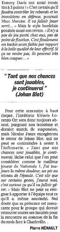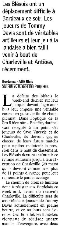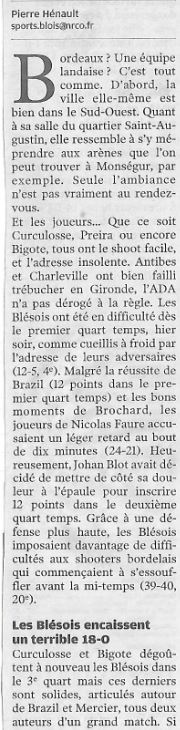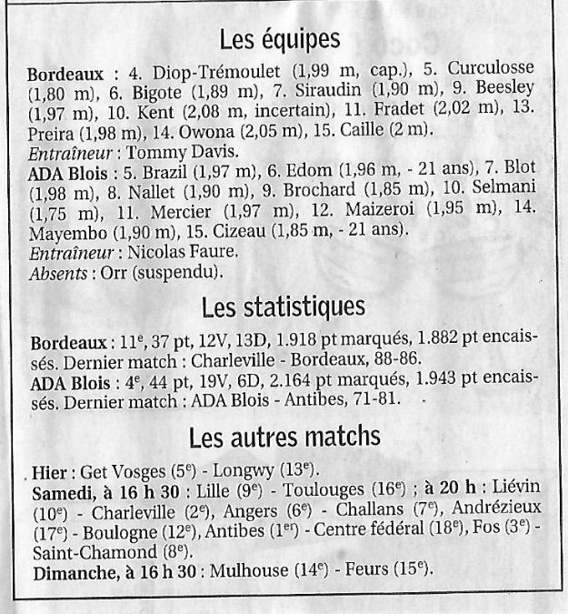 Saison 2007 – 2008 : En Championnat de Nationale Masculine 1, lors de la Journée du 15 Mars 2008, les JSA Bordeaux battent l’ADA Blois