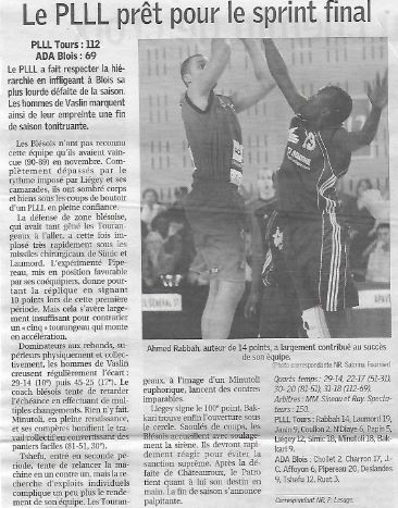 Saison 2007-2008 : En Championnat de Nationale Masculine 3, lors de la Journée du 15 Mars 2008, Le PLLL Tours bat l’ADA Blois (R)