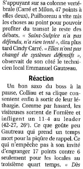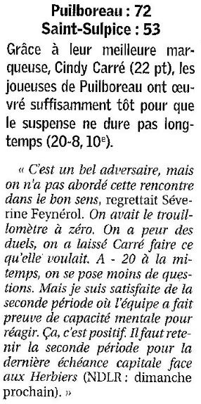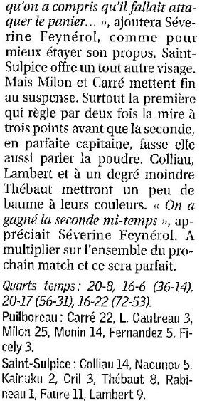 Saison 2007-2008 : En Nationale Féminine 3, lors de la Journée du 6 Avril 2008, Puilboreau bat Saint-Sulpice