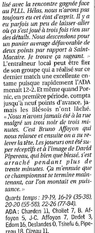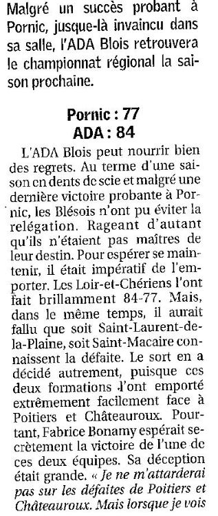 Saison 2007-2008 : En Championnat de Nationale Masculine 3, lors de la journée du 12 Avril 2008, l’ADA Blois (R) bat Pornic