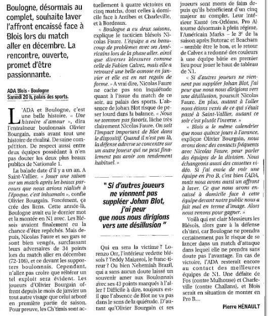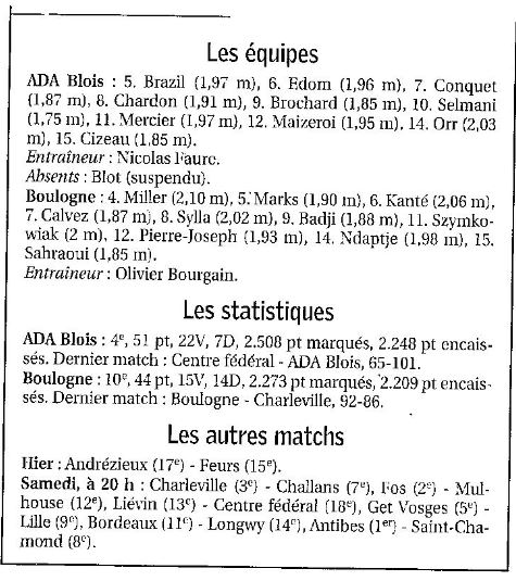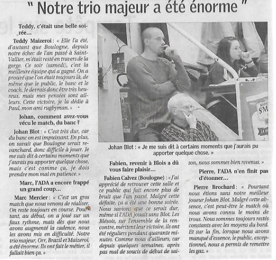 Saison 2007-2008 : En Championnat de Nationale Masculine 1, lors de la Journée du 19 Avril 2008, l’ADA Blois bat Boulogne-sur-Mer