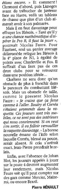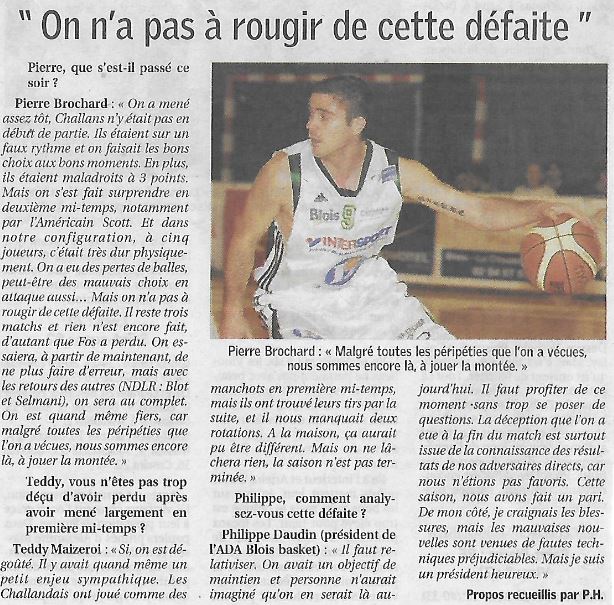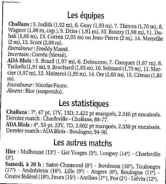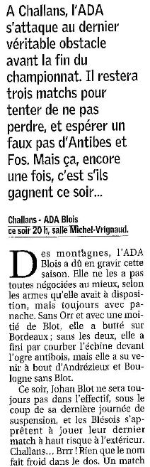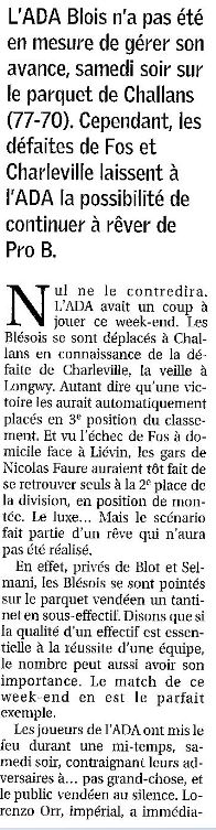 Saison 2007-2008 : En Championnat de Nationale Masculine 1, lors de la Journée du 26 Avril 2008, Challans bat l’ADA Blois