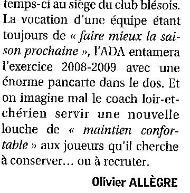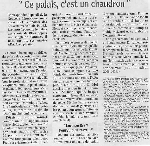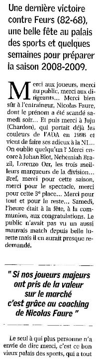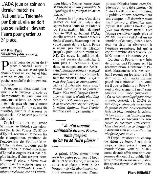 Saison 2007-2008 : En Championnat de Nationale Masculine 1, lors de la Journée du 24 Mai 2008, l’ADA Blois bat Feurs